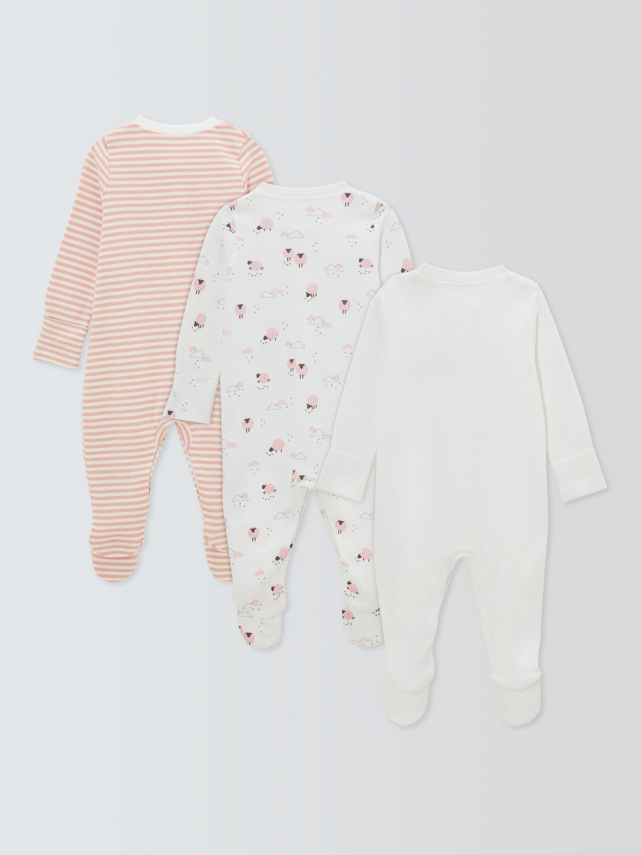 John Lewis Baby Sheep Long Sleeve Sleepsuits Pack of 3 Pink