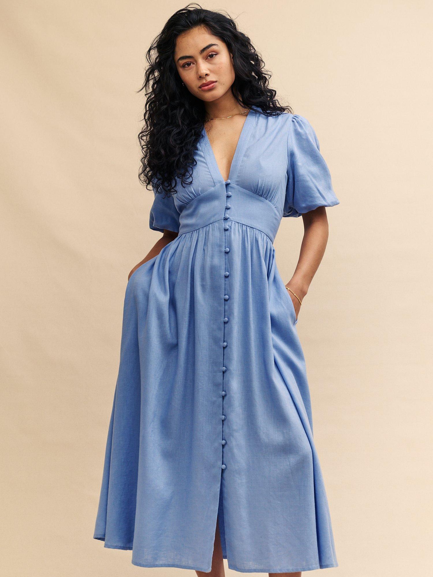 Nobody s Child Starlight Puff Sleeve Midaxi Dress Blue