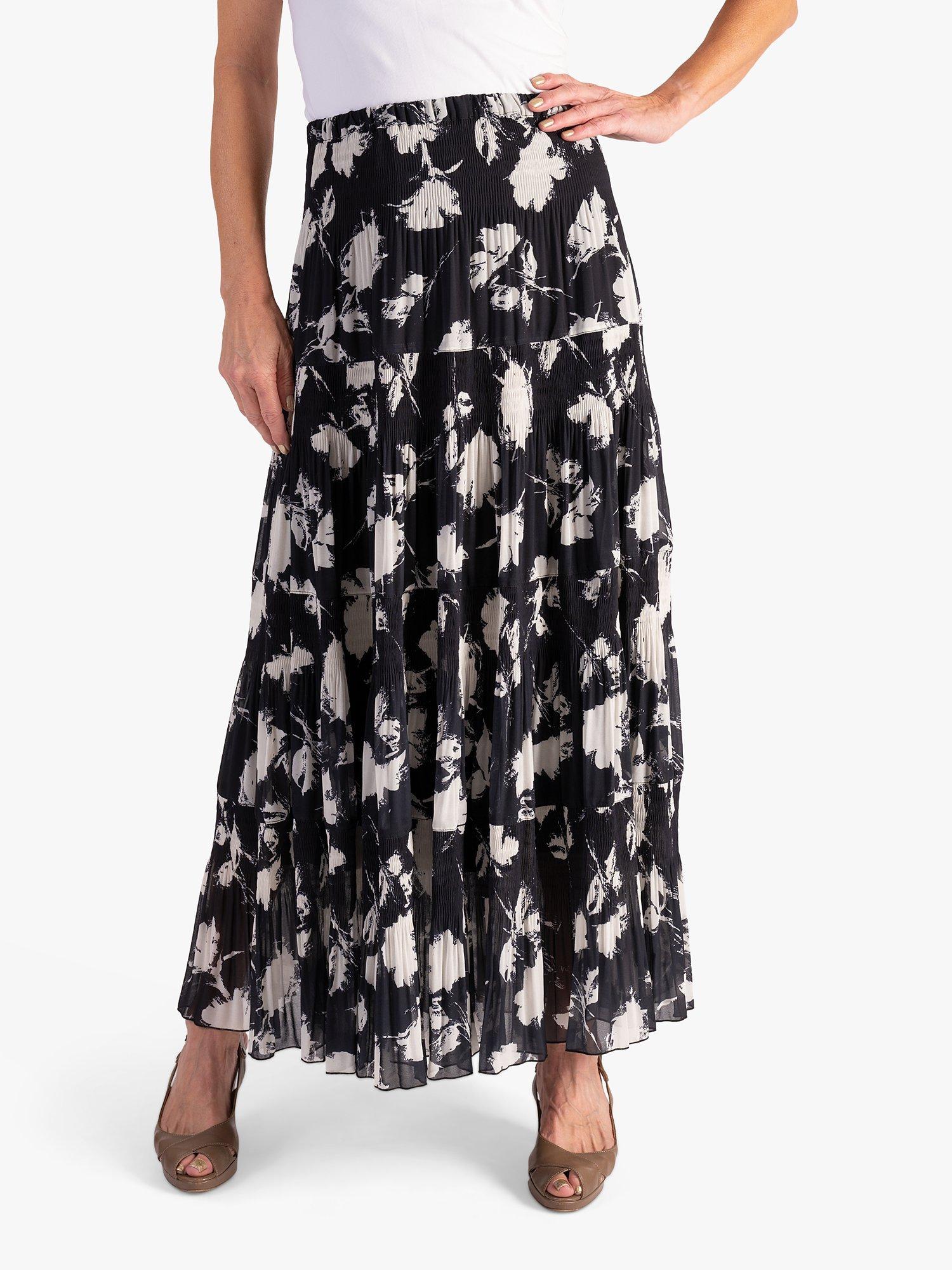 chesca Floral Print Pleated Tiered Maxi Skirt Black White