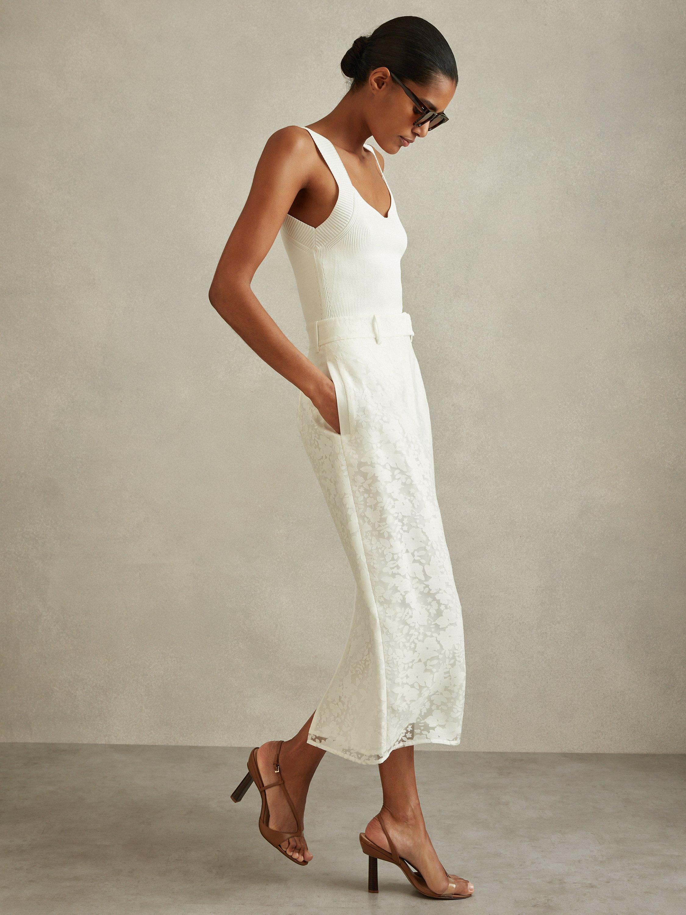 Reiss Denva Burnout Floral Midi Skirt Ivory