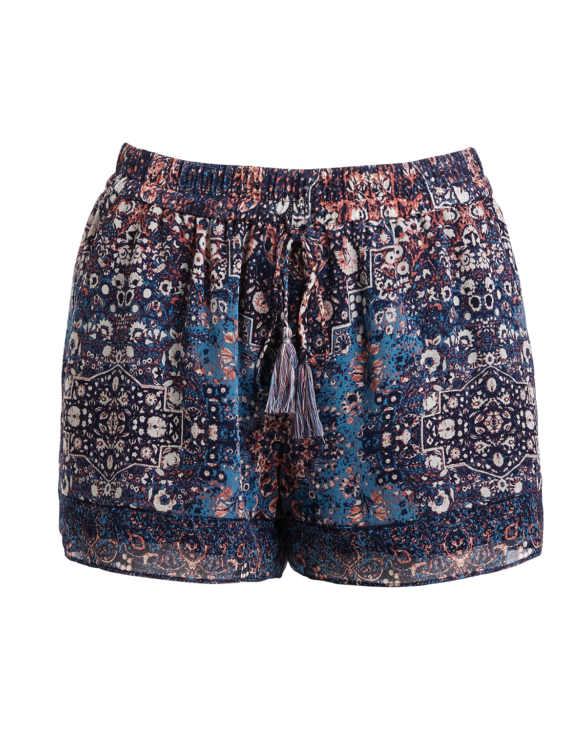 Joie silk shorts deals, Lindee Printed Drawstring Silk Shorts Blue deals