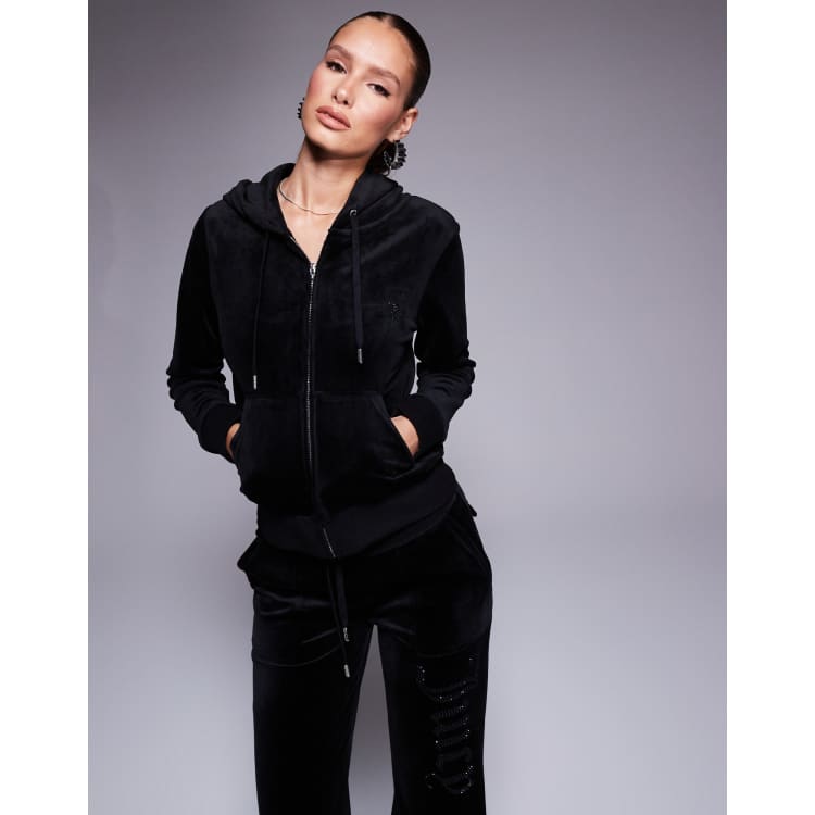 Juicy Couture velour tonal jewel zip through hoodie in black part of a set ASOS