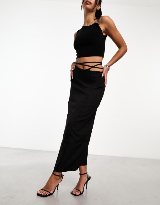 Kaiia Jupe longue ajustee avec lien noue a la taille Noir ASOS