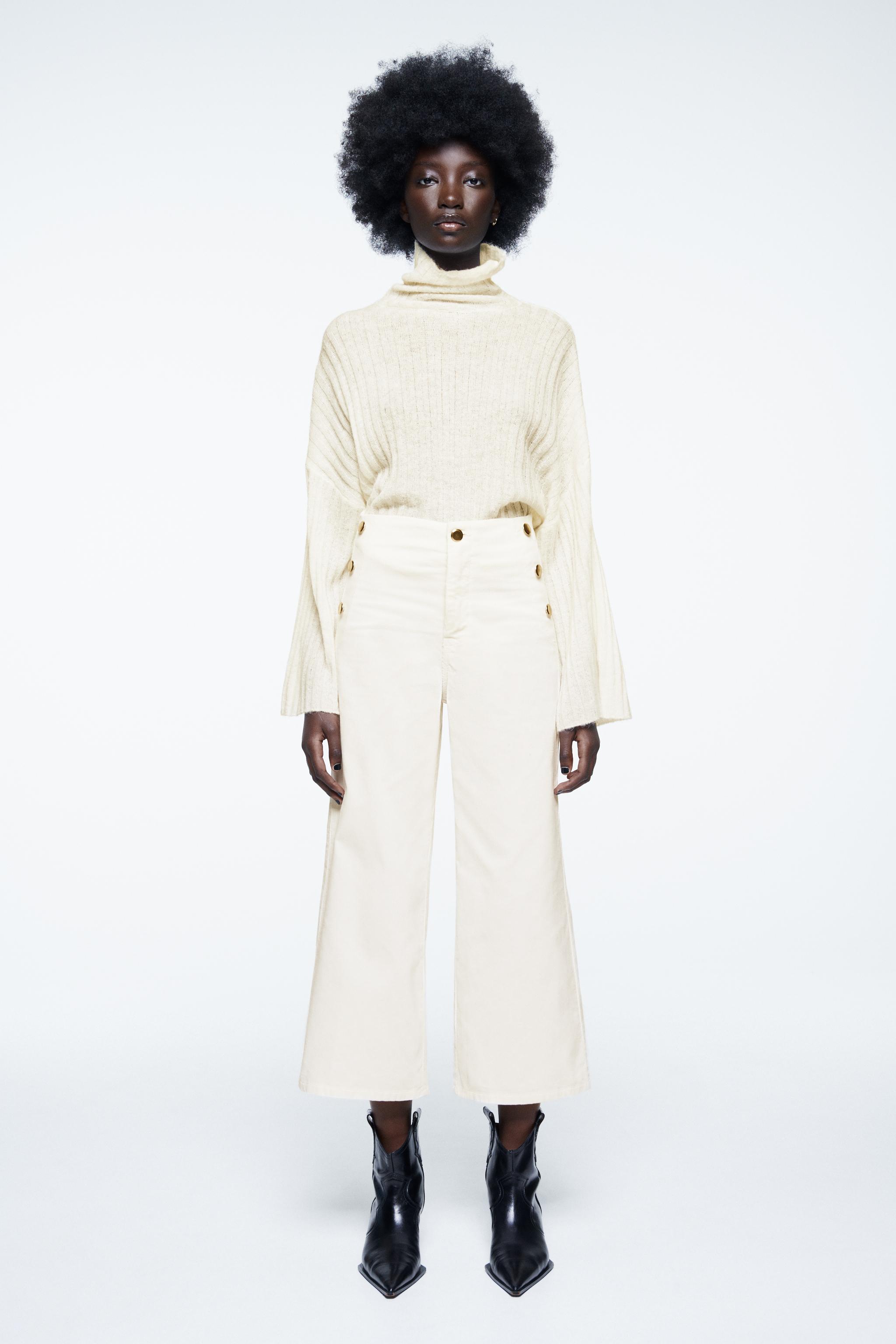 JUPE CULOTTE EN VELOURS COTELE AVEC BOUTONS Ecru ZARA France