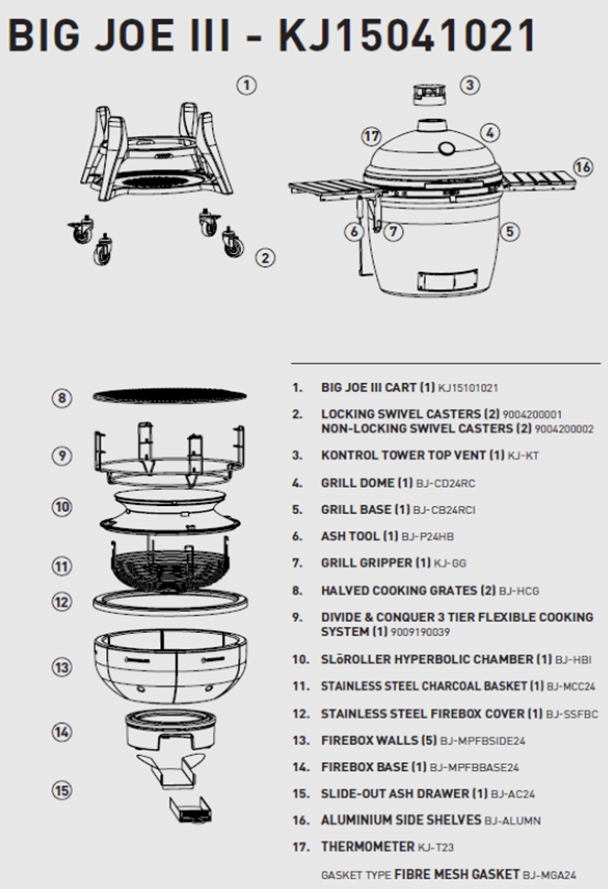 Barbeques Galore Kamado Joe Big Joe Series III Spare Parts KJOEKJ15041021