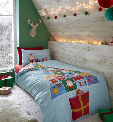 Catherine Lansfield Bedding Kids Countdown To Christmas Duvet Cover Set with Pillowcases Light Blue DIY at B Q