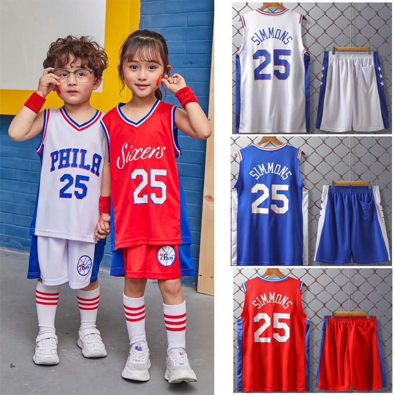 NBA Philadelphia 76ers Jersey 25 SIMMONS Jersey Children Kids Tops Shorts Basketball Uniform Set