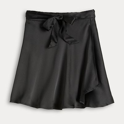 Women s Wrap Skater Skirt Casual Satin Mini Skirts