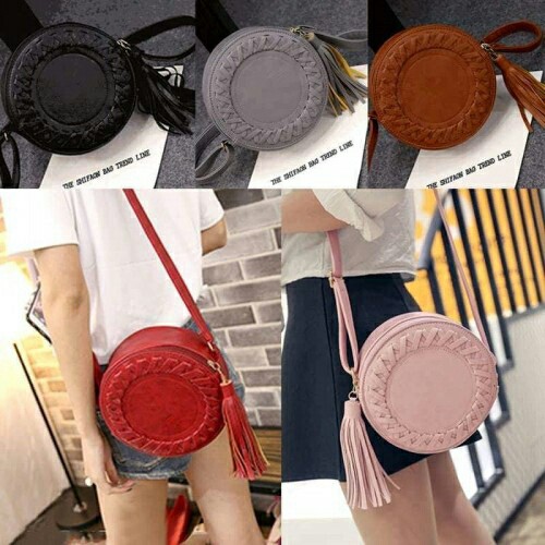 Circle Korean Circle Drum Simple Tassels Casual Small Shoulder Bag Sling Bag Shopee Malaysia