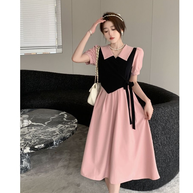 Korean Style Dress Women Summer Fake Two Piece Narrow Waisted Dress Shopee Malaysia