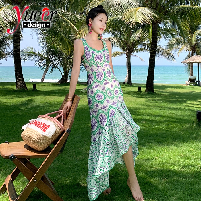 Heavy Industry Lace Crochet Sling Long Dress S XL Spanish Niche Heavy Industry Hollow Embroidered ins Shoulder Strap Narrow Waisted Irregular Dress Lace Sling One Piece Dress Korean Style Shopee Singa...