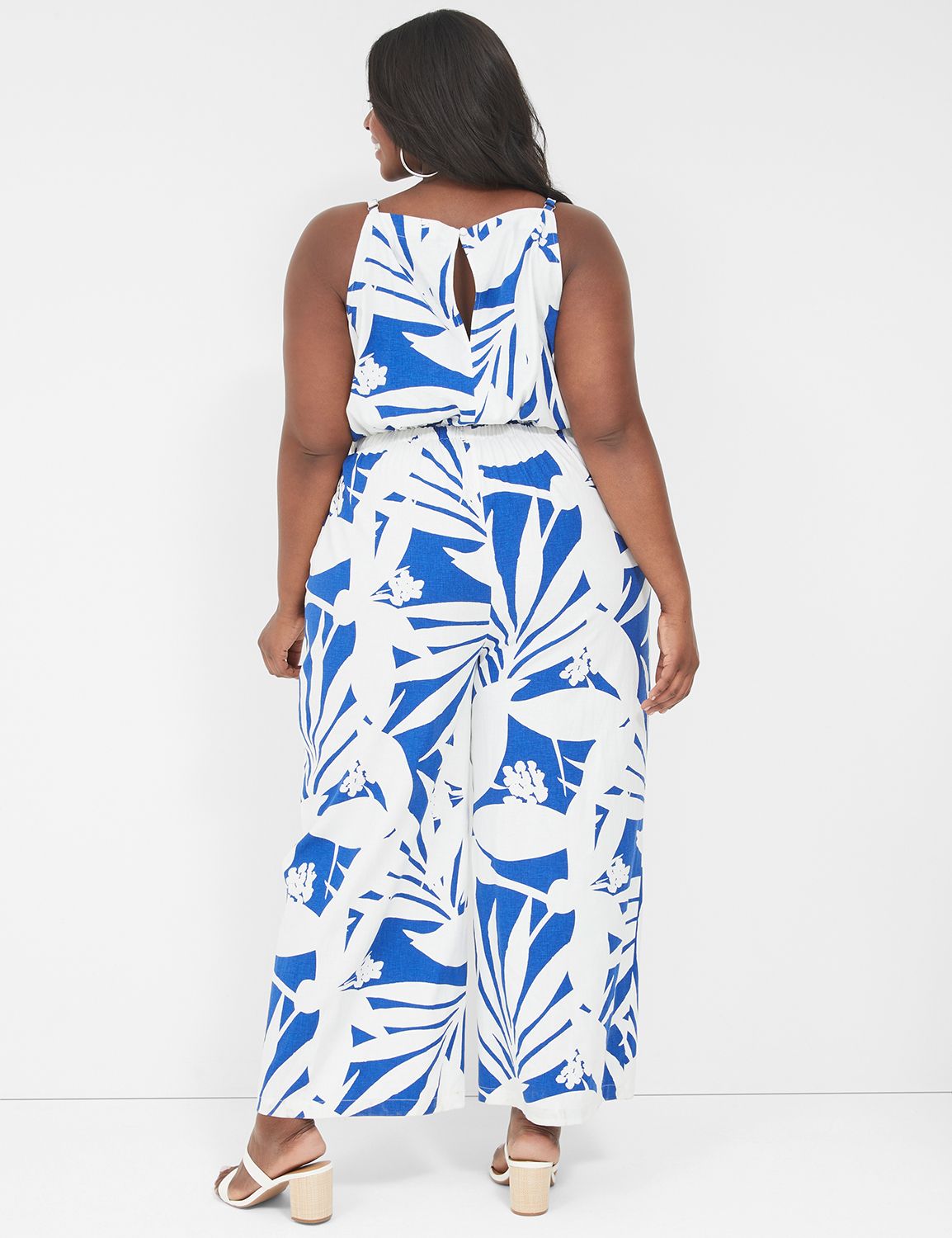 Linen V Neck Wide Leg Jumpsuit LaneBryant
