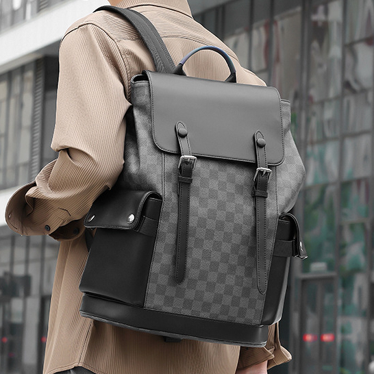 2024 New Leather Large Capacity Checkered Backpack Travel Bag Shopee Philippines