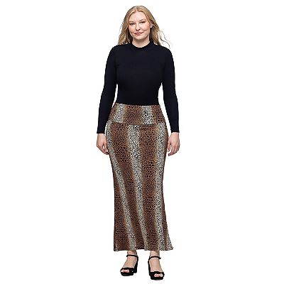 Women s 24Seven Comfort Apparel Animal Print Foldover Waist Maxi Skirt