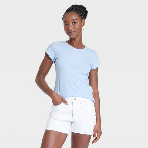 Women s Fitted Short Sleeve T shirt Universal Thread Light Blue S Target
