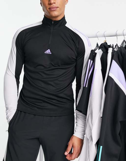 adidas Training Langarmliges Oberteil in Schwarz mit Einsatzen im Blockfarbendesign und kurzem ReiBverschluss ASOS