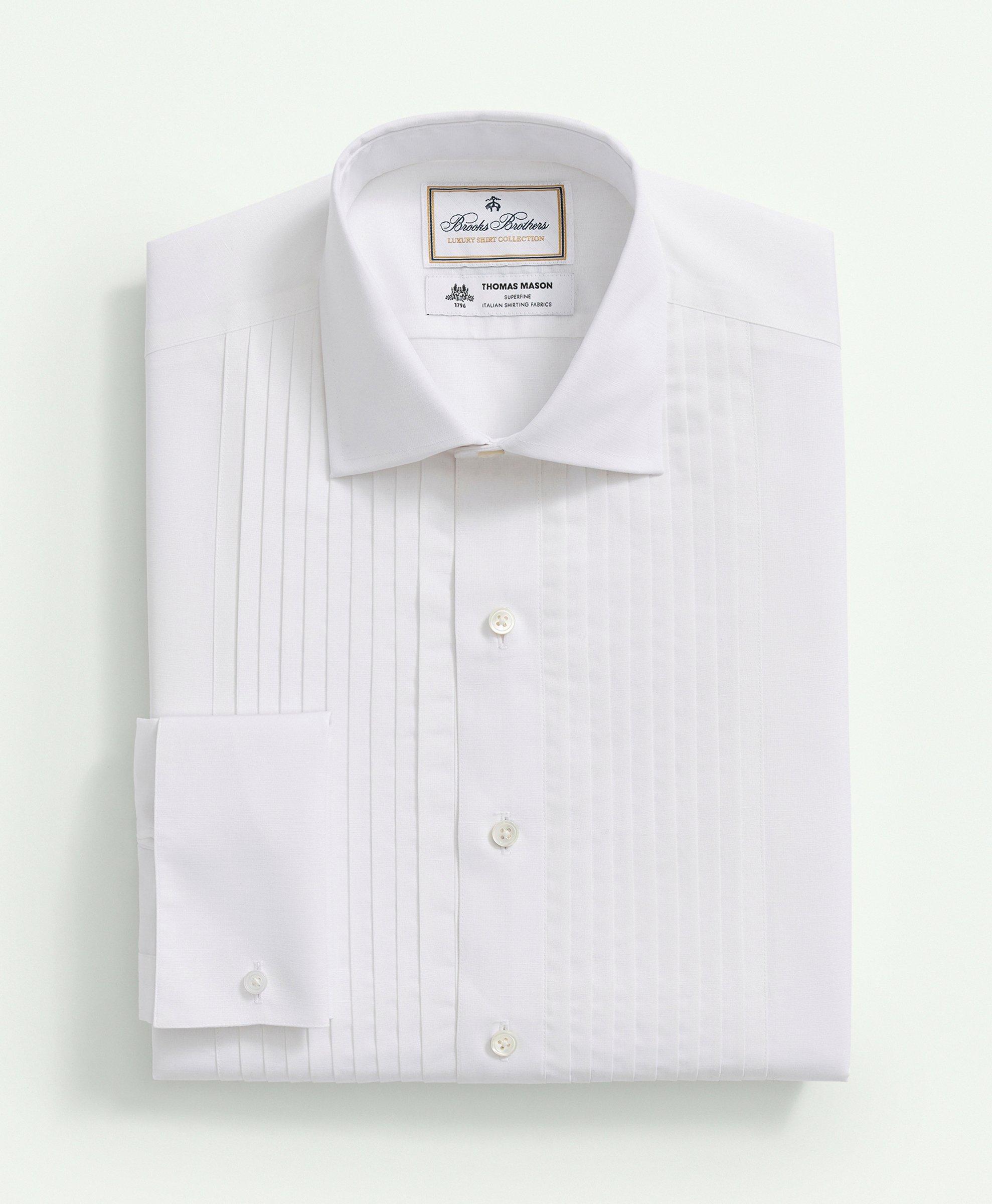 Brooks Brothers X Thomas Mason Cotton Linen English Collar Pleat Front Tuxedo Shirt
