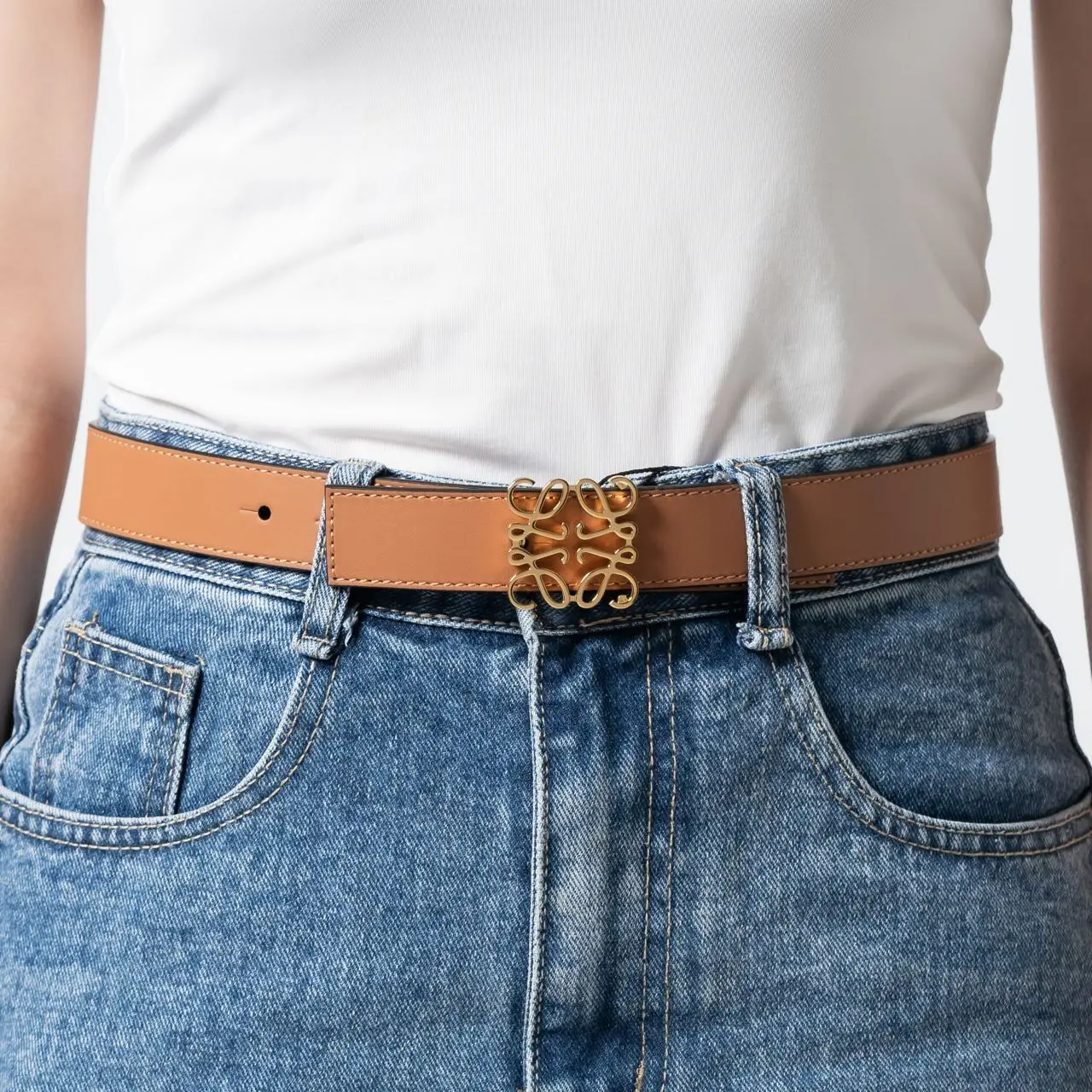 Reversible Anagram Ellipse belt in smooth calfskin Tan Black Gold LOEWE