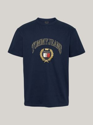 Logo Embroidery Crew Neck T Shirt Blue Tommy Hilfiger