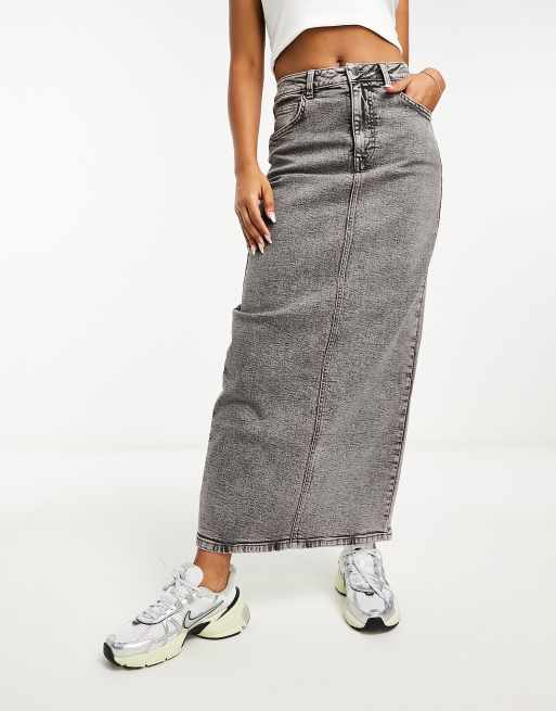 ASOS DESIGN denim maxi skirt with split hem in washed grey