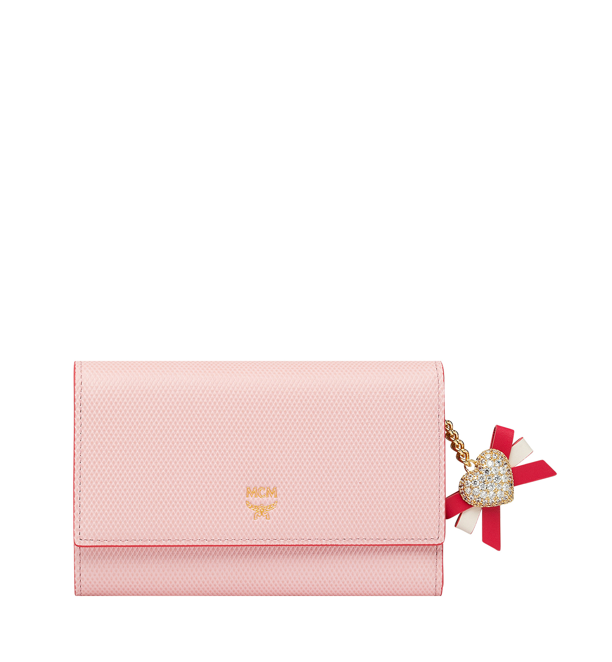 Shop Mcm Mina Heart Charm Three fold Wallet In Leather In Quartz Pink