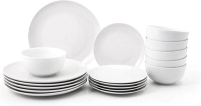 18PC Dinnerware Porcelain White Set 6 Dinner Plates 6 Side Plates 6 Bowls. Dishwasher Microwave Safe