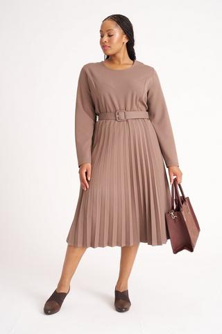 PLEAT FIT AND FLARE DRESS STONE 3XL Stone MILADYS