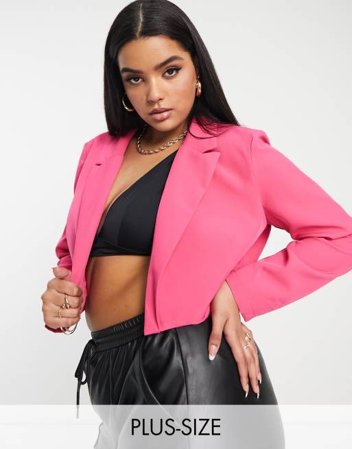 Missguided Plus tailored cropped blazer in bright pink part of a set ASOS