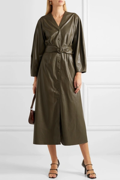 Nanushka Femme Belted Vegan Leather Midi Dress In Army Green ModeSens
