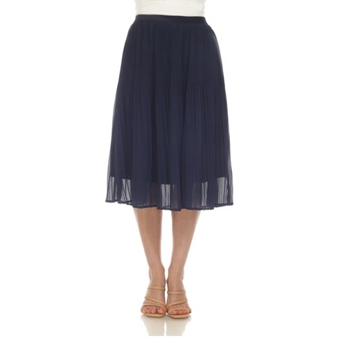 White Mark Women s Chiffon Pleated Midi Skirt Navy Xlarge