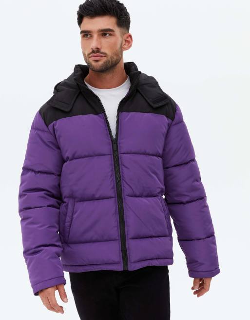 New Look colour block puffer jacket in purple