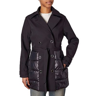Women s Nicole Miller Black Soft Shell Lower Body Puffer Trench Coat