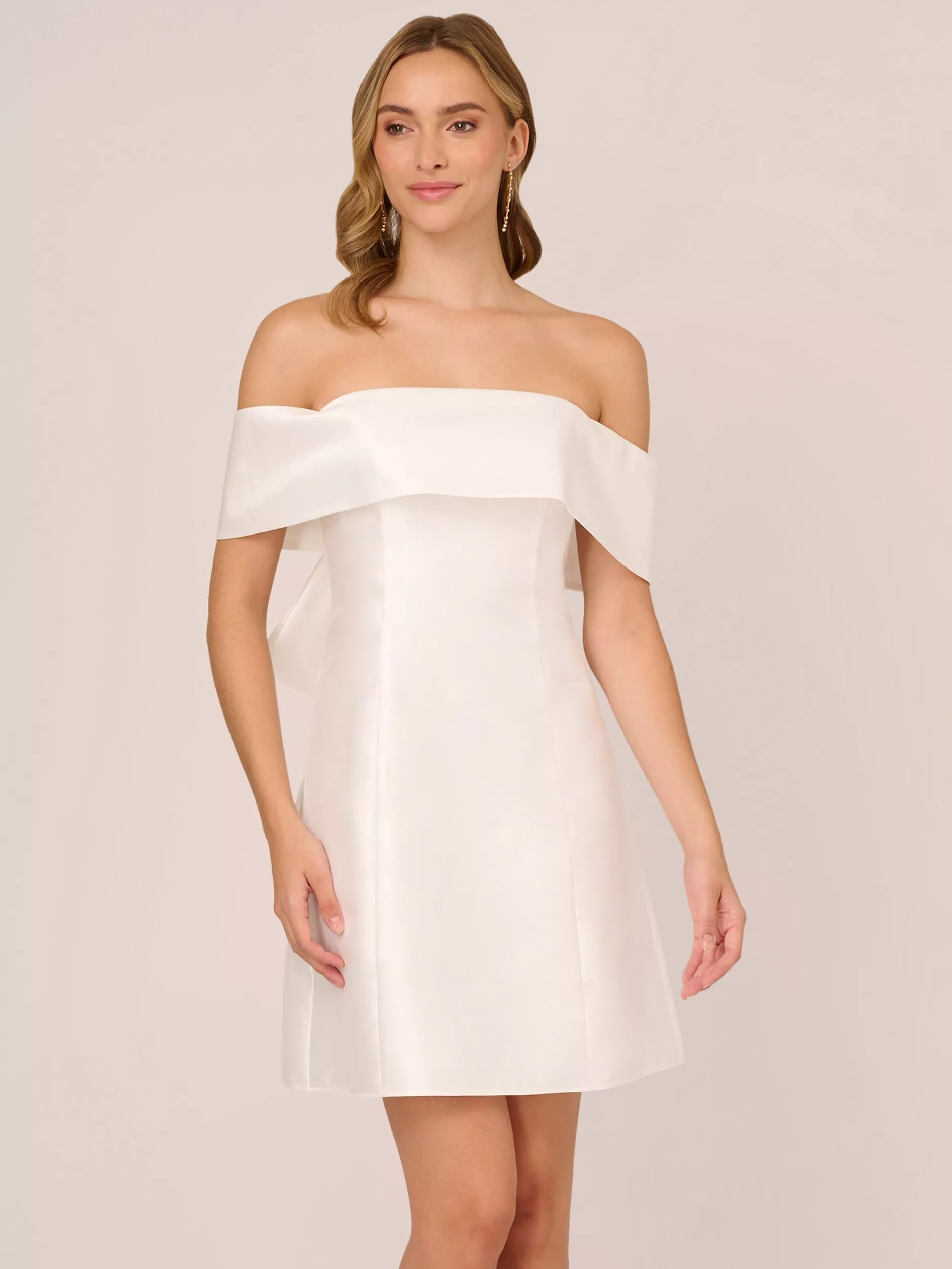 Adrianna Papell Mikado Bow Short Dress Ivory
