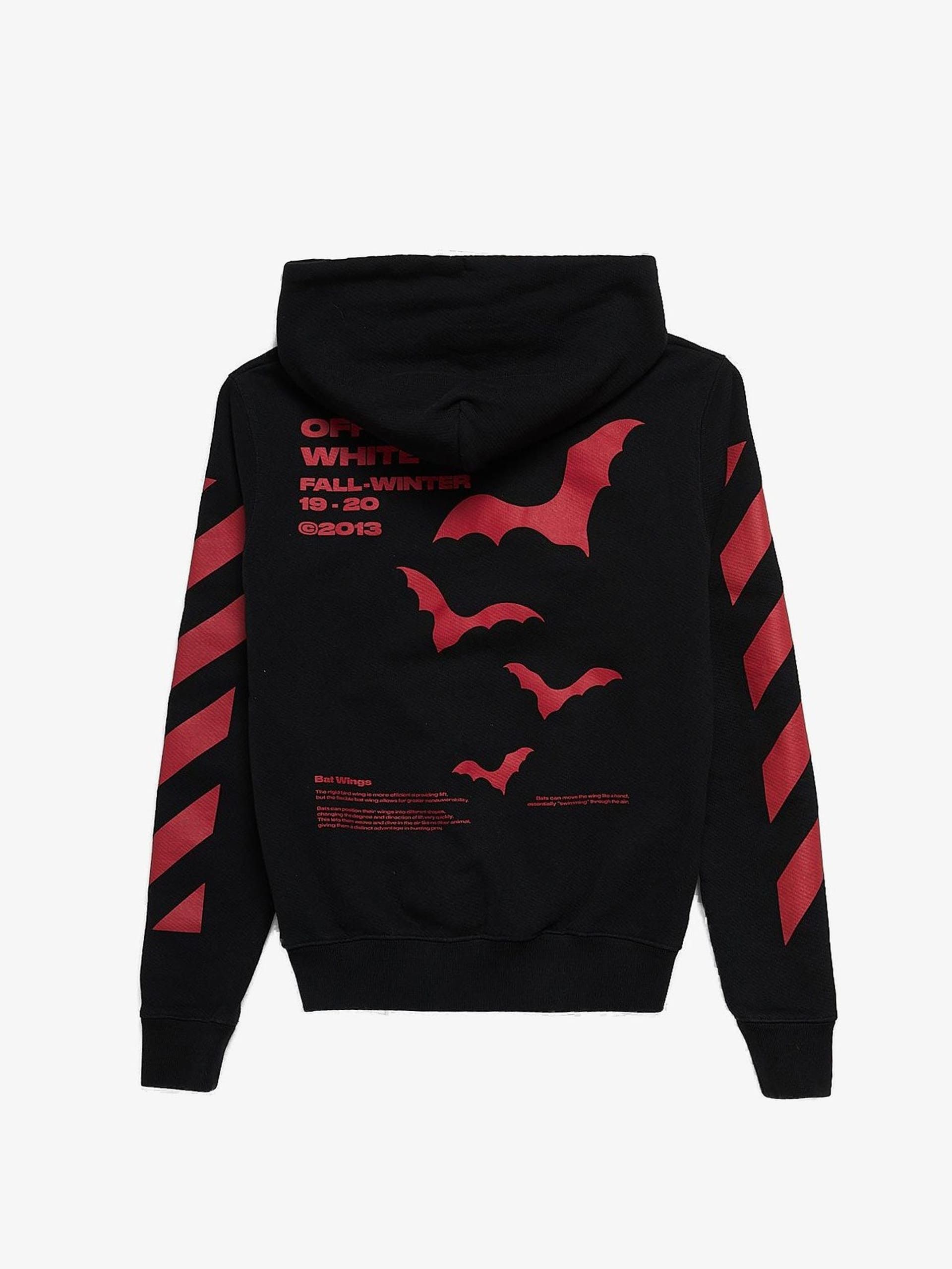 Off White Black and Red Bat Logo Printed Cotton Hoodie Grailed