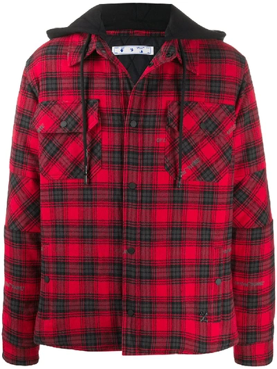Off White Red Multicolour Plaid Hooded Jacket VSP Consignment