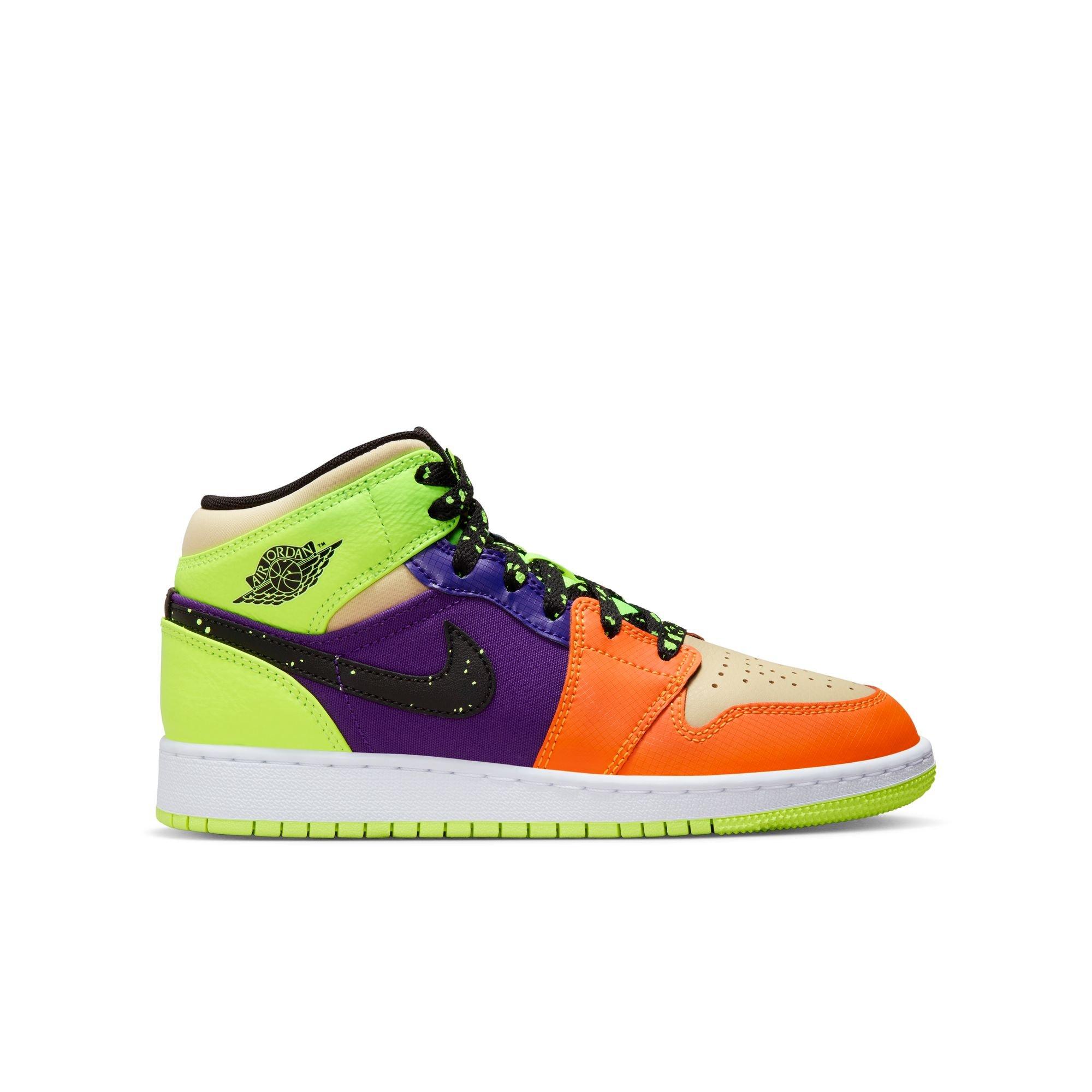 Jordan 1 Mid SE Volt Black Vivid Orange Grade School Kids Shoe Hibbett