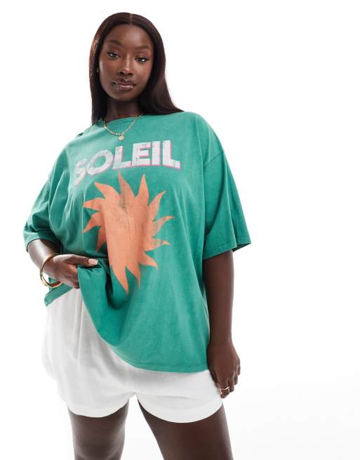 ASOS Design Curve Oversized T Shirt with Soleil Graphic in Washed Green