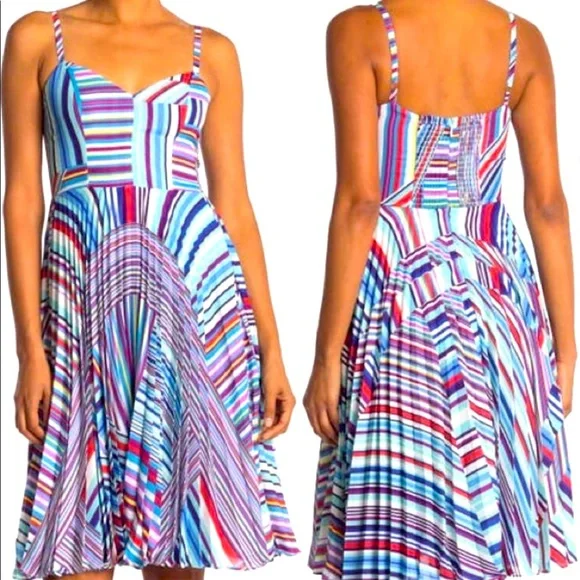 PARKER 8 Magna Dress Striped Fit n Flare Swing Midi 350 eBay