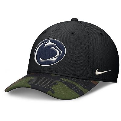 Men s Nike Black Camo Penn State Nittany Lions 2024 Military Appreciation Rise Swoosh Performance Flex Hat
