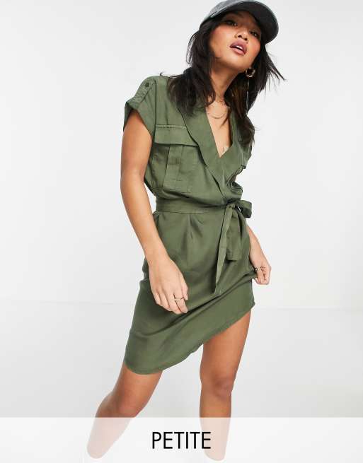 Petite khaki dress deals, Prettylittlething Women s Petite Green Woven Mini Dress Size 8 deals