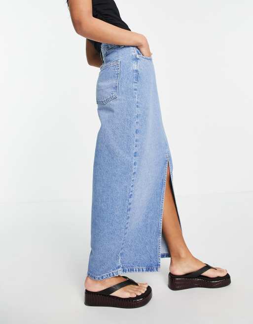 ASOS DESIGN Petite cotton denim 90s maxi skirt in midwash MBLUE ASOS
