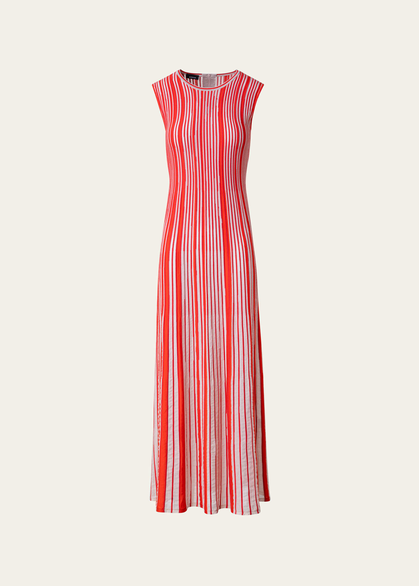 Akris Asagao Striped Silk Wool Blend Knit Midi Dress Poppy sand 6