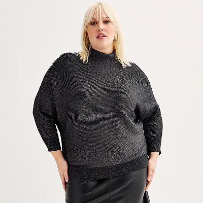 Plus Size philosophy Dolman Sleeve Shoulder Placket Metallic Sweater