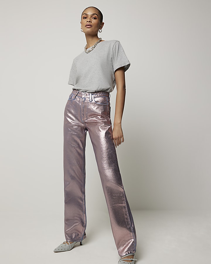 Pink metallic pants deals, Metallic Straight Legged Trousers in Pink watts that trend deals