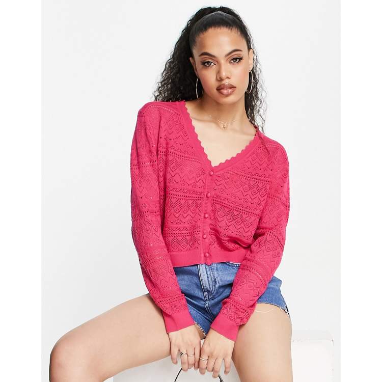 Pink pointelle cardigan deals, Threadbare pointelle cardigan in hot pink ASOS deals
