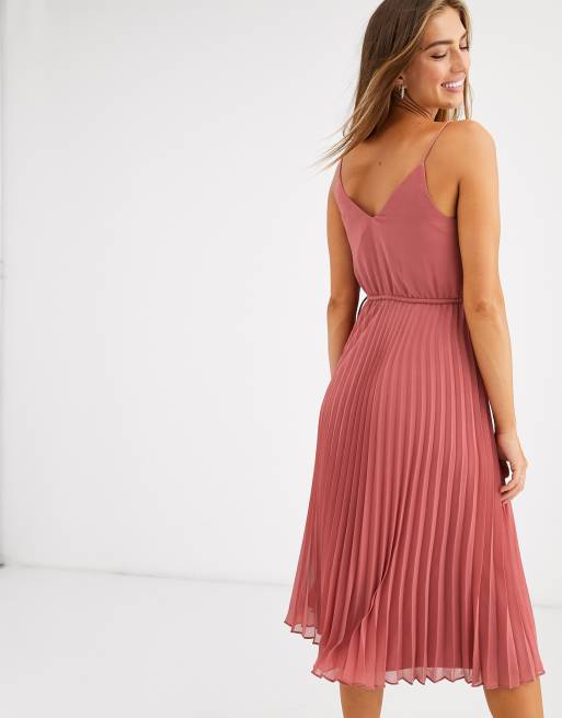 ASOS DESIGN pleated cami midi dress with drawstring waist