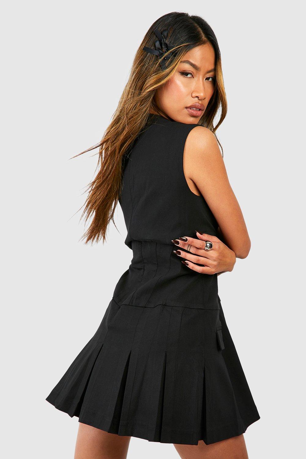 Petite Soft Tailored Crepe Tab Detail Pleated Mini Dress Karen Millen