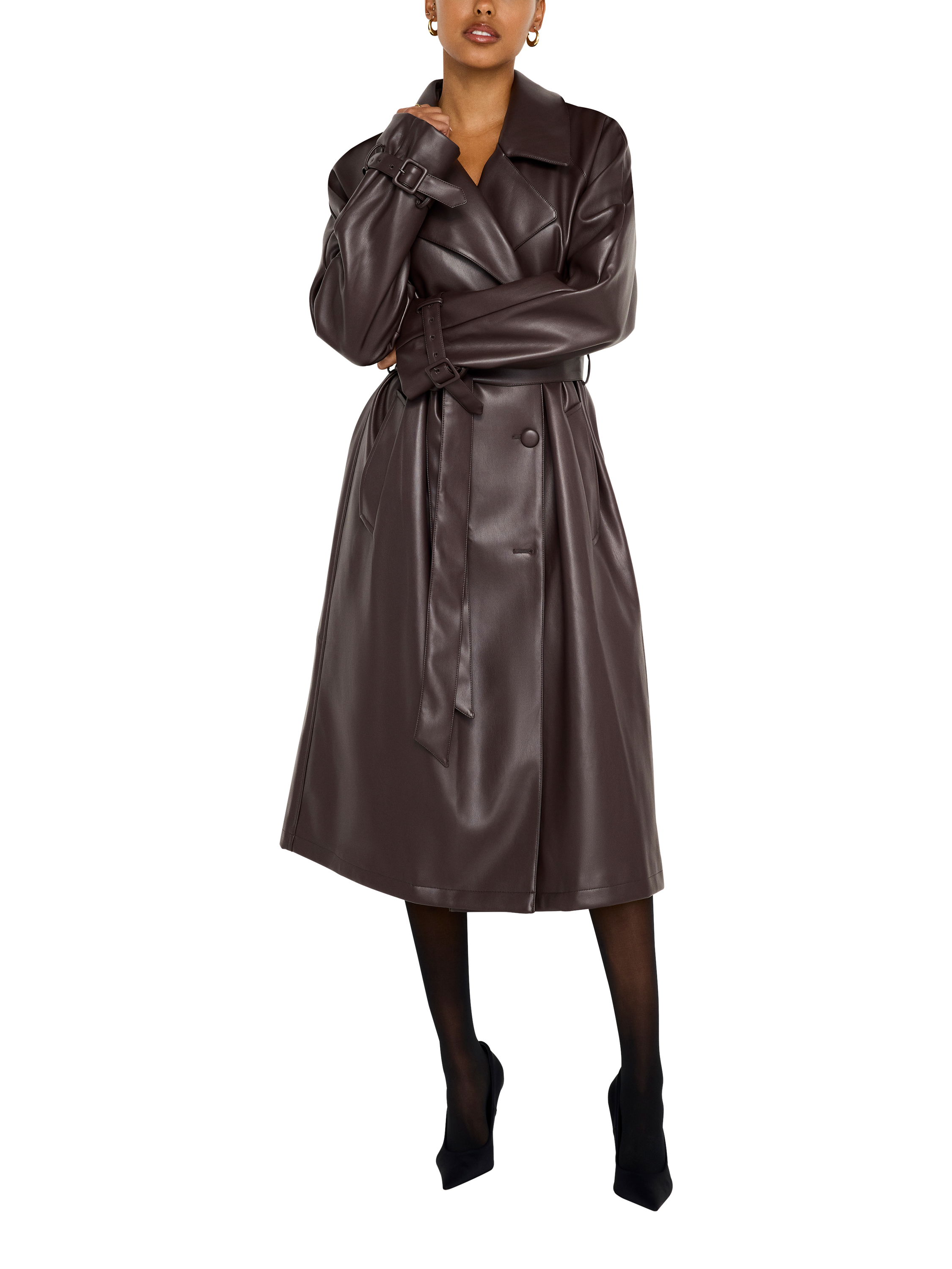 Ladies Faux Leather Trench Coat Black Womens Outerwear Shop Jackets at CERNUCCI.COM Cernucci
