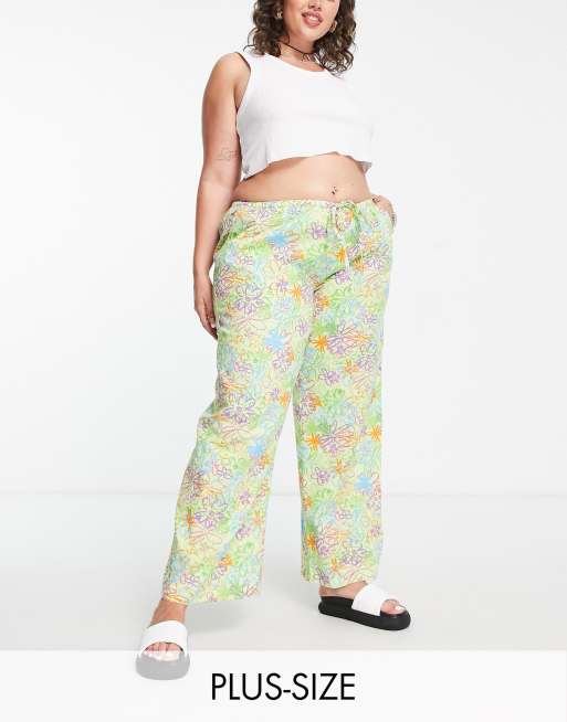Plus size beach trousers deals, COLLUSION Plus scribble floral beach trouser in multi ASOS deals