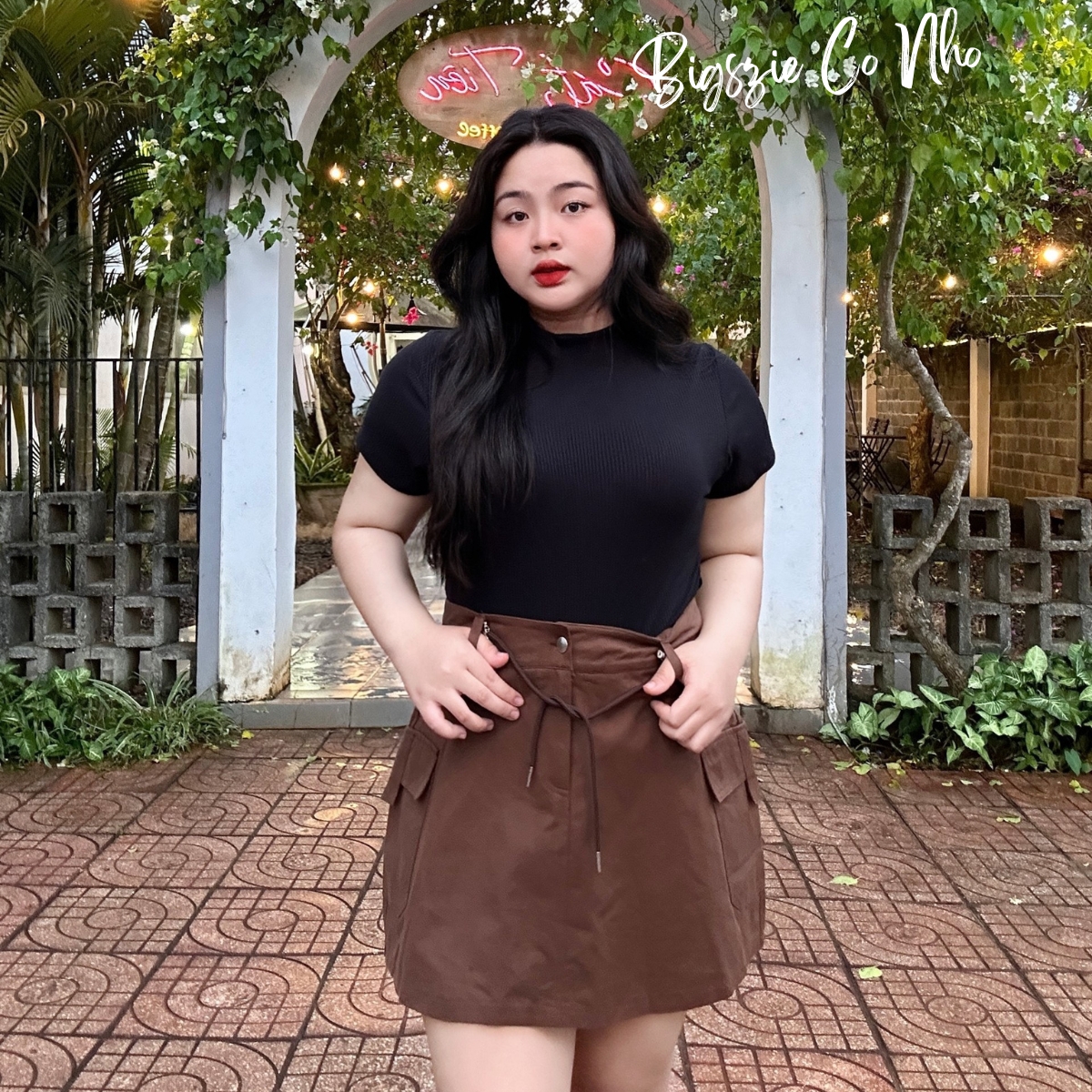 Women s short A line big size khaki skirt with decorative pockets on both sides with flexible adjustable drawstring CV18 Shopee Singapore